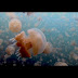 Golden and spotted jellyfish comparison. Note the loss of spots, color and greatly reduced clubs in the golden jellyfish from Jellyfish Lake.